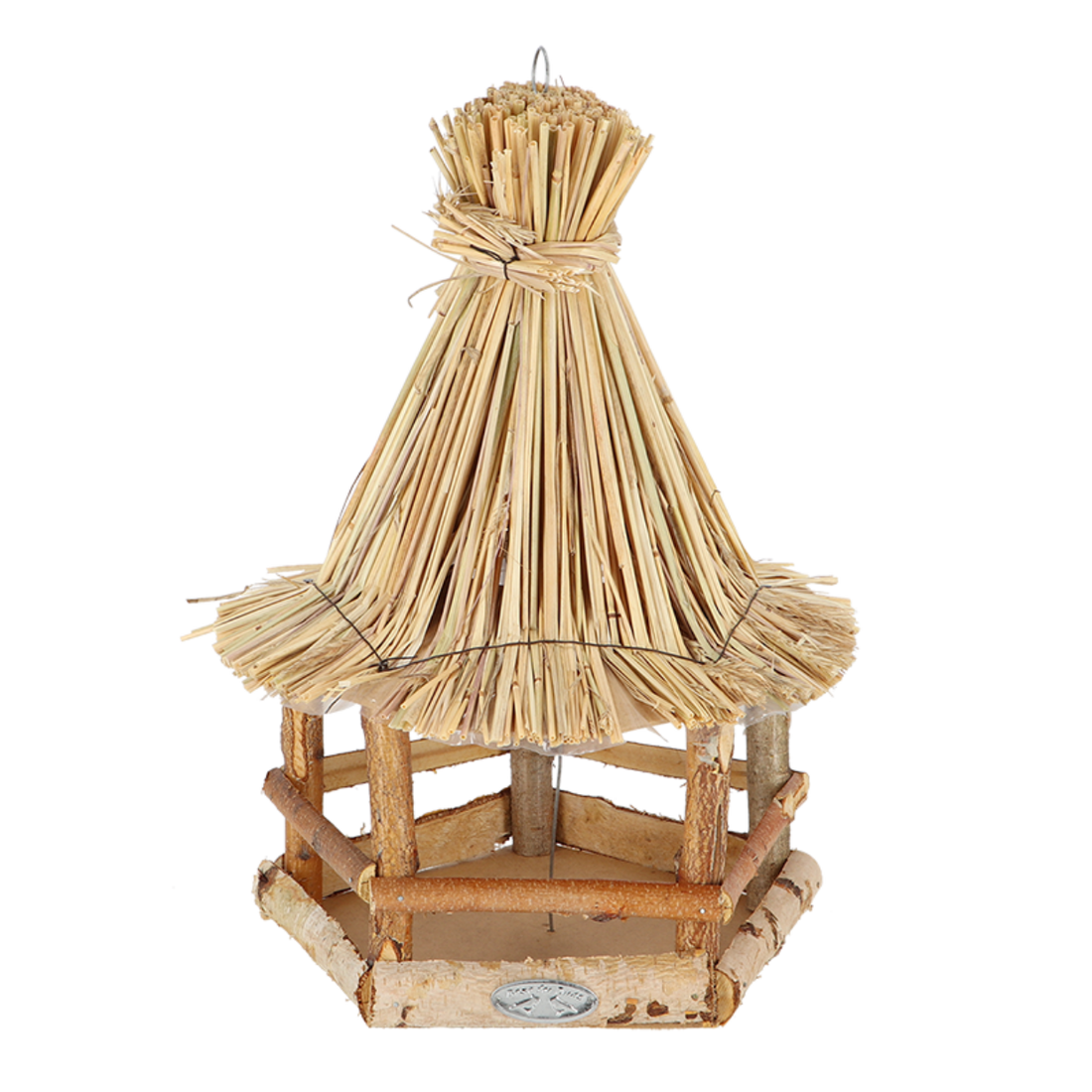 Hangend vogelvoederhuis berkenhout met dak van stro