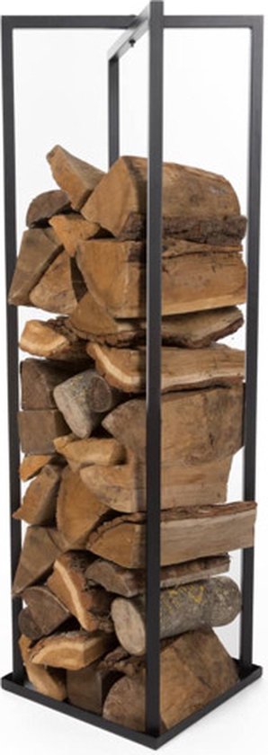 Perel Houtrek voor brandhout – houtopslag staander van metaal – mat zwart – 34 x 34 x 118 cm