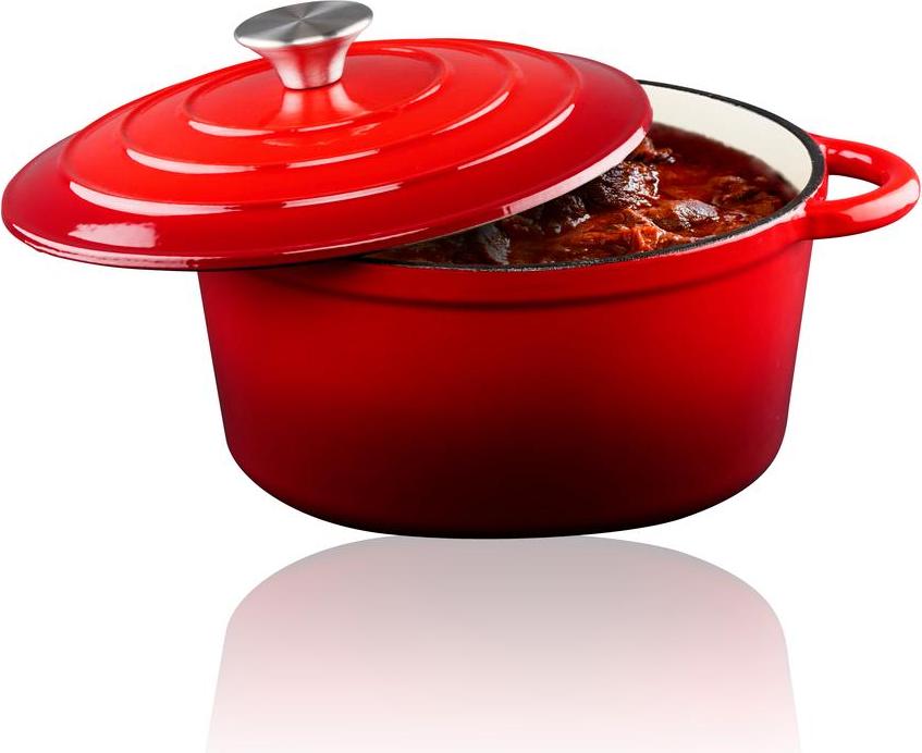 Ontdek de perfecte combinatie van stijl en functionaliteit met de alpina geëmailleerde gietijzeren braadpan. Met een royale doorsnee van 24 cm en een aantrekkelijke rode kleur voegt deze braadpan een vleugje elegantie toe aan je keuken. Het geëmailleerde gietijzer zorgt niet alleen voor duurzaamheid, maar ook voor een gelijkmatige warmteverdeling, wat essentieel is voor het bereiden van heerlijke gerechten. De braadpan heeft een inhoud van 3,8 liter en een bijpassende deksel. De braadpan biedt voldoende capaciteit voor het bereiden van smaakvolle stoofschotels, suddergerechten en meer. Dankzij de vaatwasserbestendigheid wordt het opruimen van de gietijzeren pan een fluitje van een cent, waardoor je na het koken ook weer snel klaar bent. De alpina braadpan is veelzijdig in gebruik en geschikt voor verschillende warmtebronnen, waaronder keramisch koken, inductie, elektrisch koken, koken op gas en zelfs gebruik in de oven. Voeg deze hoogwaardige gietijzeren pan met deksel toe aan je keukencollectie en beleef keer op keer de vreugde van koken met alpina.