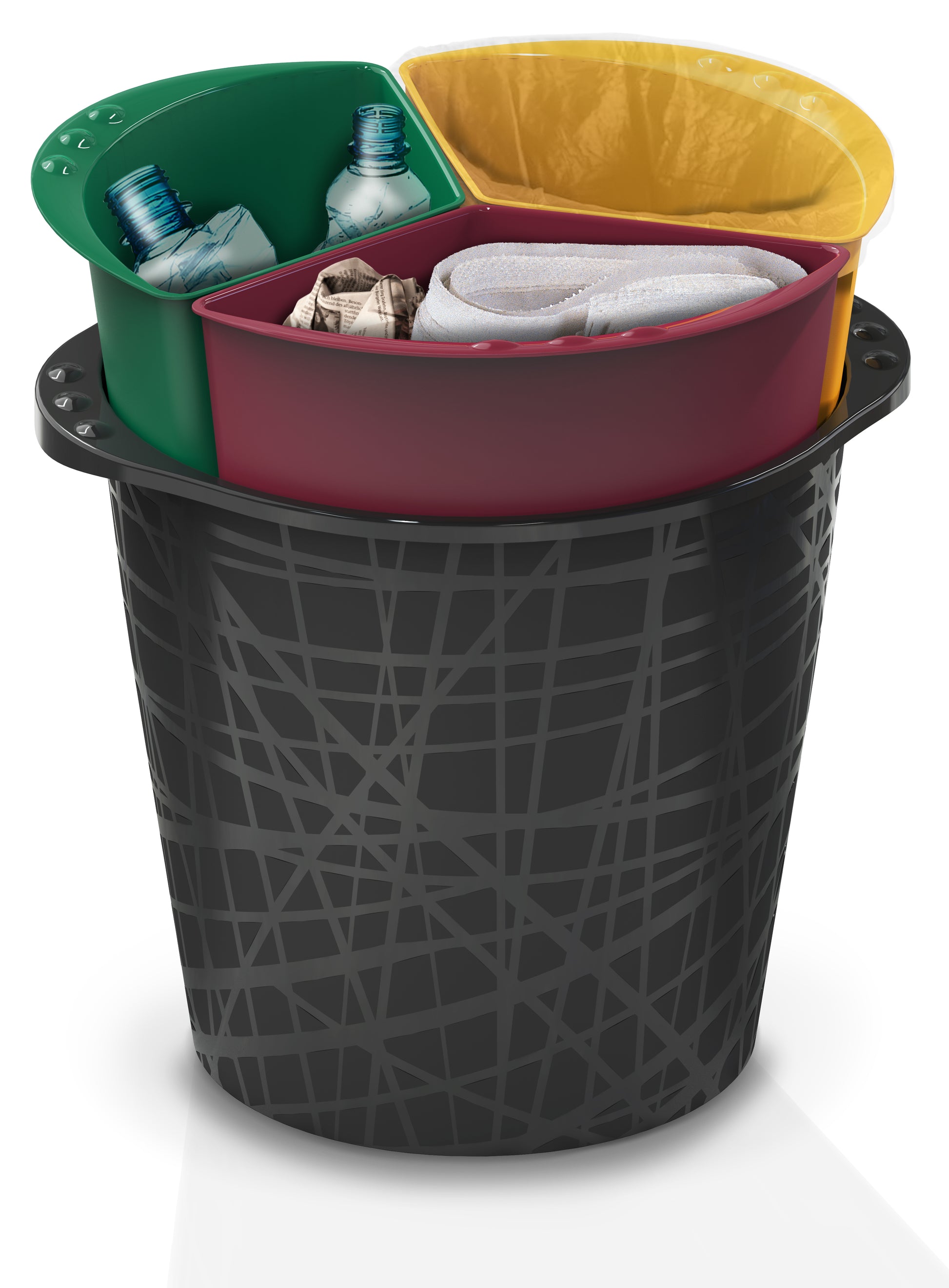 3 compartimenten van 4,5 liter – ideaal voor plastic, papier, GFT of restafval