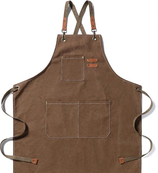 Dutchlander - stoer katoenen schort met handige vakken - Bruin - one size