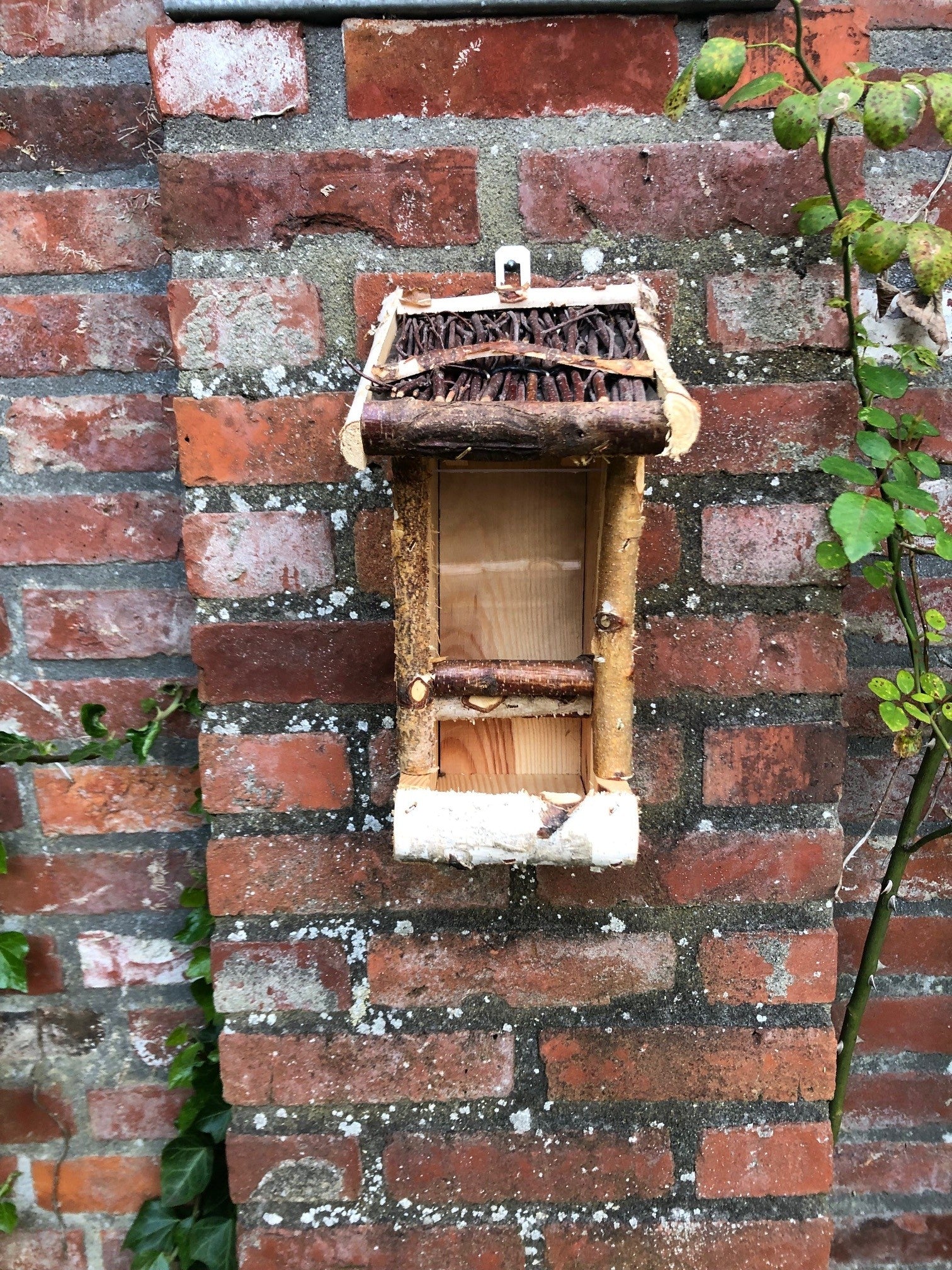 • Materiaal: berkenhout met wilgen dak + plexiglas venster