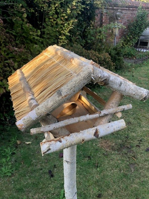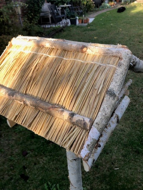 Het ruime plateau van 39 x 39 cm biedt plaats voor verschillende soorten vogelvoer, zoals zaden, noten of vetbollen. De natuurlijke uitstraling met berkenafwerking en stro zorgt ervoor dat de voedertafel niet alleen praktisch is, maar ook een decoratieve toevoeging aan je tuin of terras.