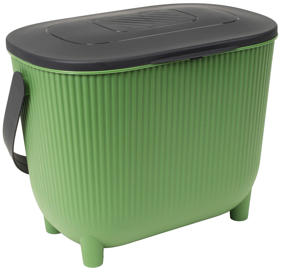 De compostemmer is gemaakt van hoogwaardig kunststof dat duurzaam, stevig en gemakkelijk schoon te maken is. Met een inhoud van 10 liter biedt de emmer voldoende capaciteit voor dagelijks gebruik, terwijl hij toch compact genoeg blijft voor iedere keuken. De stijlvolle cactus/antracietkleur geeft de emmer bovendien een moderne uitstraling die in elk interieur past.