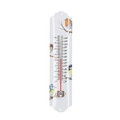 Thermometer voor binnen en buiten gebruik gemaakt van metaal met een vrolijke tuinvogel print. De thermometer heeft een Celsius aanduiding van -25 tot +55 graden en een Fahrenheit aanduiding van -10 tot +120 graden.