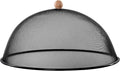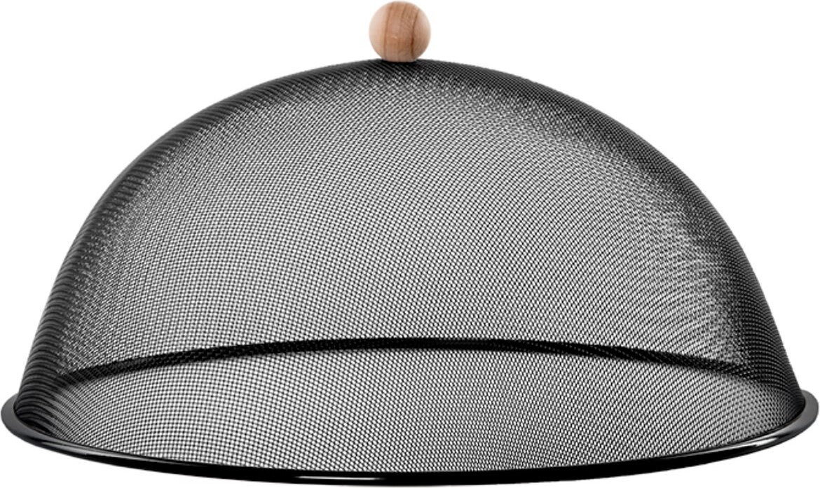 Deze zwarte anti-vliegenkap met beukenhouten handvat beschermt het eten en drinken tegen opdringerige insecten. De vliegenkap is niet geschikt voor bescherming tegen fruitvliegjes.