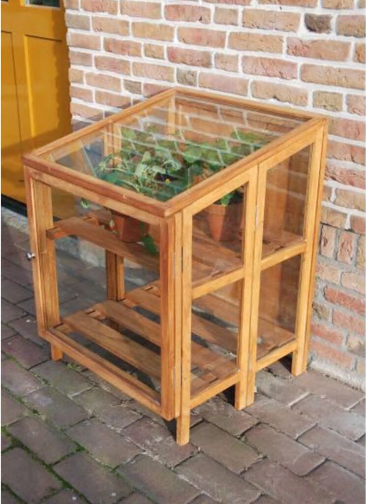 Hardhouten FSC gecertificeerd op-en inklapbare kweek/broeikas met verstelbare bovenklep plus een deur aan de voorzijde.