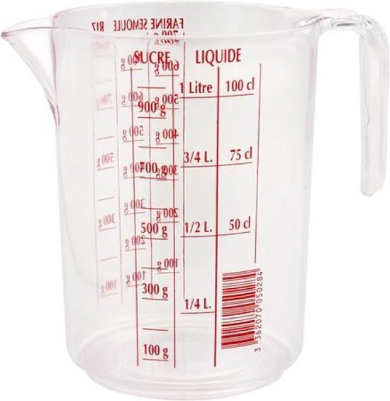 Maatbeker 1 liter transparant kunststof - Keuken accessoires en benodigdheden