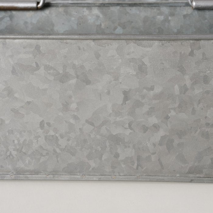 Deze stijlvollezinken bakje is een veelzijdig opbergaccessoire dat zowel in de keuken als in de tuin zijn nut bewijst. Gebruik het als bestekhouder op tafel, voor het opbergen van keukengerei op het aanrecht of als handig bakje voor je tuingereedschap, labels en handschoenen. Dankzij de robuuste afwerking en het authentieke design past dit bakje perfect in een landelijke, industriële of rustieke omgeving.