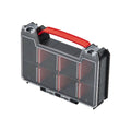 bevat 8 vakken voor het organiseren van kleine werkplaatstoebehoren. Dankzij de verstelbare scheidingswanden kan de binnenkant van de organizer naar wens worden georganiseerd. Het polycarbonaat deksel en een comfortabele greep zorgen weer voor duurzaamheid en ergonomie van het werk. QS. PRO. Organizer. Multi is een praktische aanvulling op de. QS. PRO. Toolbox - dankzij speciale geleiders biedt de. QS. PRO. Toolbox ruimte voor 5. QS. PRO. Multi organizers. Eigenschappen 8 inzetstukken voor het opbergen van kleine onderdelen en benodigdheden. Geschikt voor werkplaats, ambacht,. DHZ, hobby en vrije tijd. Met doorzichtig deksel voor meer overzicht. Vaste en comfortabele handgreep zorgt voor veiligheid en werkcomfort. Kunststof behuizing, geen risico op corrosie of oxidatie. Materiaal. Kunststof. Afmetingen ca. 25,5 x 18,4 x 6,5 cm (l x b x h). Gewicht ca. 378 g. Gereedschapsbox voor kleine onderdelen.