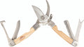 Deze compacte multitool is handig voor verschillende klussen in en om de tuin. Hij is voorzien van 5 gereedschappen, waaronder wortelverwijderhaak met mes aan kopse kant, snoeimes, snoeischaar met veiligheidsslot, penwortelsteker en een houtzaag. De multitool is gemaakt van stevig roestvrij staal in combinatie met essenhout. Dankzij de compacte en geringe formaat kan de multitool overal makkelijk mee naartoe.
