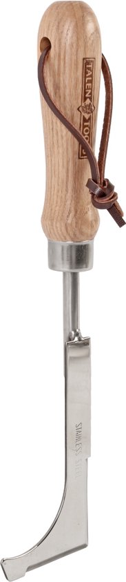 Het handvat bestaat uit sterk essenhout. Deze houtsoort is behandeld met een wax, waardoor vuil en vocht worden afgestoten. Bovendien ligt het hout prettig in de hand, waardoor het werken met deze handvoegenkrabber comfortabel blijft. Ben je klaar met het onkruid wieden? Het leren koordje geeft je de mogelijkheid om dit voegenkrabbertje aan een gereedschapshaak op te hangen. Zo voorkom je dat dit tuingereedschap kan slijten door contact met andere gereedschappen of met de grond.
