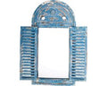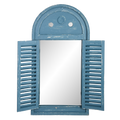 Spiegel luiken (louvre deurtjes) verouderd blauw in Mediteraanse stijl. De luiken kunnen gesloten worden. Ook in Mediterraan groen leverbaar, zie verwante producten hierboven.