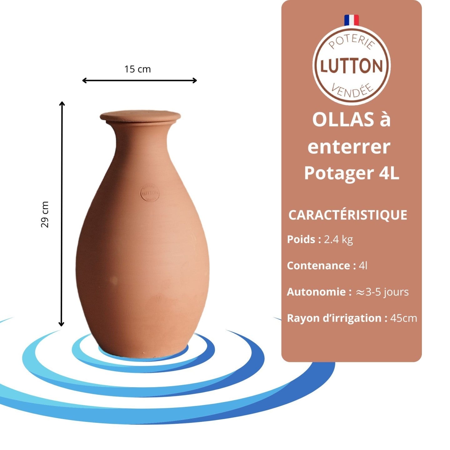 Ollas Potager Ingraaf Waterreservoir – Terracotta – Natuurlijk en Waterbesparend Irrigatiesysteem - 4 liter