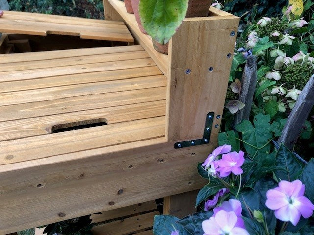 De tafel is gemaakt van 100% FSC®-gecertificeerd hout, afkomstig uit duurzaam beheerde bossen. Daarmee kies je niet alleen voor kwaliteit, maar ook voor een milieuvriendelijke oplossing. Dankzij de ergonomische werkhoogte kun je comfortabel werken zonder te bukken of te knielen – ideaal voor langdurig tuinieren zonder rug- of knieklachten.