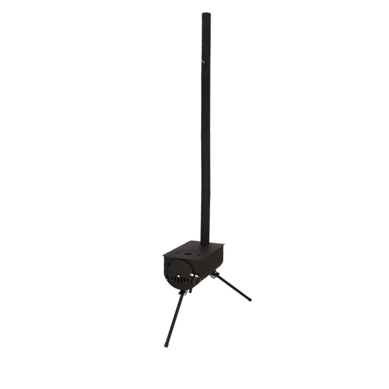 Het gesloten ontwerp houdt de warmte optimaal vast en maakt de kachel extra veilig in gebruik. Het vuur is hierbij nauwelijks zichtbaar, waardoor de nadruk ligt op efficiënt verwarmen en praktisch gebruik. Bovenop de kachel kun je pannen plaatsen, zodat je eenvoudig een gerecht of drankje warm houdt terwijl je geniet van het buitenleven.