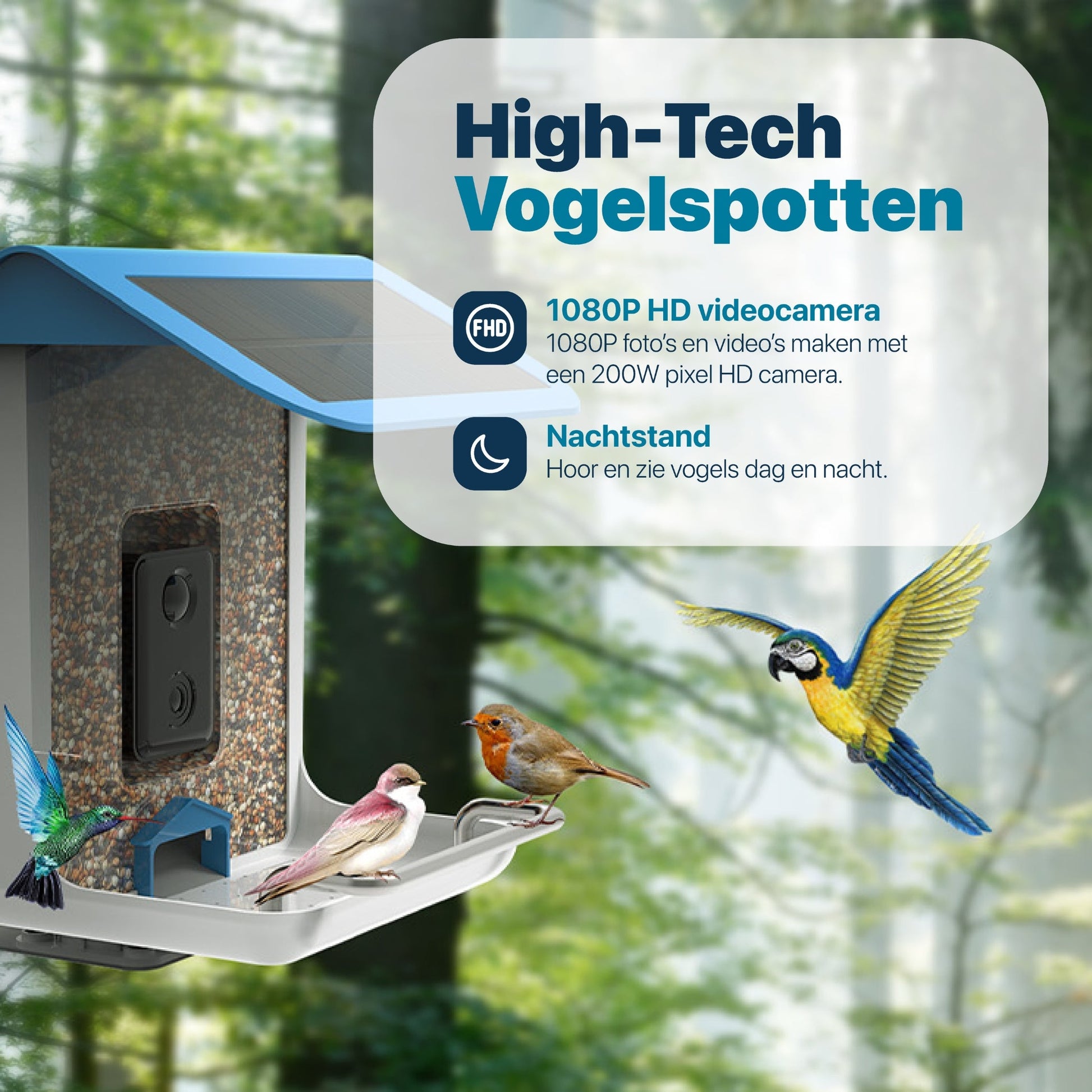 Vogelvoederhuisje - Camera en Audio - AI Vogelherkenning - Hangend