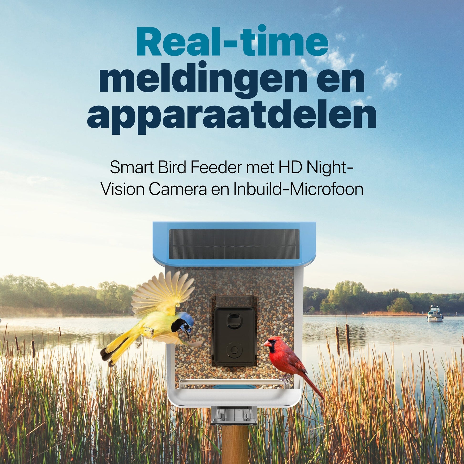De ingebouwde 1080p HD camera legt haarscherpe beelden vast van de vogels die komen eten. Met de hoge resolutie beeldkwaliteit kun je alle details van de vogels zien, van de kleurrijke veren tot de subtiele bewegingen. De camera heeft ook een ingebouwde microfoon, waardoor je niet alleen kunt zien, maar ook de geluiden van de vogels kunt horen terwijl ze zich tegoed doen aan het voer.
